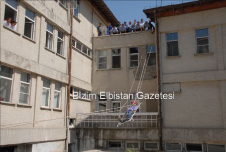 | Elbistan Kadın Doğum ve Çocuk Hastanesi ile Elbistan Belediyesi İtfaiye Müdürlüğü ekipleri, yaralı indirme tatbikatı düzenledi. |