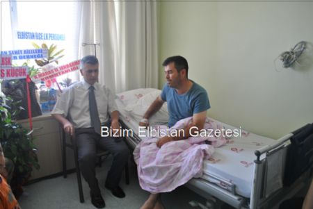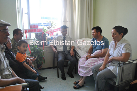 Afşin Kaymakamı Faik Arıcan, Ekinözü'nde teröristler tarafından düzenlenen silahlı saldırıdan yaralı olarak kurtulan Jandarma Uzman Çavuş Taner Yasam'a geçmiş olsun ziyaretin de bulunurken, şehit olan arkadaşından dolayı baş sağlığı dileklerinde bulundu.