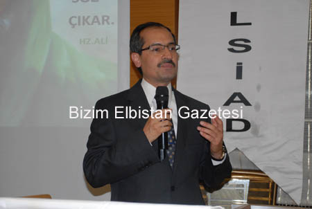 ‘Ali Muhammed Mustafa’dan, Muhammed Mustafa da Ali’den ayrılmaz’ diyerek başladığı konferansına şu şekilde devam etti, “Kur’an ayı olan bu ay, Kur’an’dan ayrılmayan Ehli Beyt’in en önemli neferlerinden birisi olan İmam Ali’nin aynı zamanda şehit olduğu ay. İmam Ali 21’inde Hakk’a yürümüş. Son 10 gün dahi beklemeye tahammül edememiş. Şehadet şerbetini içmiş. İksir ilmini bilen, velayet ilmini bilen Ali. Ham ruhları olgun ruha çeviren, hani burada kömür yaygın, kömürü elmas yapan, ham bir canı, ruhu kamil bir insan yapan. Peygamber efendimiz ‘Ey Ali sen ve ben Hakk’ın delalıyız, biz ikimiz Hakk’ı biliriz, bildiririz.’ diyor. O yüzden Hakk Ali’den Ali de Hakk’tan ayrılmaz. Ali Muhammed Mustafa’dan ayrılmaz. Muhammed Mustafa da Ali’den ayrılmaz. Allah’a kavuşmak istiyorsanız, Muhammed Mustafa’ya kavuşmak istiyorsanız Ali kapısından geçeceksiniz. Böyle söylüyor peygamber efendimiz. Peygamber efendimiz ‘Ben ilmin şehriyim, Ali onun kapısıdır. Bir şehre kapısından girilir. Eğer Muhammed Mustafa şehrine girmek istiyorsanız, beni kendinize örnek almak istiyorsanız, benim gibi olmak istiyorsanız, Ali kapısından gireceksiniz.’ diyor” şeklinde konuştu.