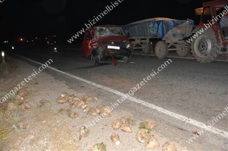 Alınan bilgilere göre E051VXZ yabacı plakalı minibüsü ile Çoğulhan’dan Elbistan istikametine gitmekte olan Ali Özdemir (56), Elbistan Şeker Fabrikası’na şeker pancarı taşıyan Edip Göçer’in (31) kullandığı 46 EV 131 plakalı traktörü fark etmeyerek, traktörün arkasında takılı olan şeker pancarı yüklü römorka arkadan çarptı.