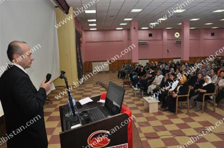 Elbistan Belediye Düğün Salonu’nda gerçekleştirilen konferans, Saygı Duruşu ve İstiklal Marşı’nın okunmasıyla başlayan konferansın açılış konuşmasını İl Sağlık Müdürlüğü Kanser Koordinatörü Dr. Mehmet Özdemir yaptı. Meme kanserinin tüm dünyada olduğu gibi ülkemizde de kadınlarda en sık görülen kanser olduğunu belirterek; “Meme kanseri tüm dünyada olduğu gibi ülkemizde de kadınlarda en sık görülen kanserdir. Ülkemizde yılda en az 20 bin kişinin meme kanseri teşhisi aldığı bilinmekte olup, ne yazık ki olgularında büyük bölümü geç evrelerde teşhis edilmektedir. Bu kapsamda 2011 yılı Kanser Savaş Dairesi Başkanlığı’nca Kadın Kanserleri Yılı olarak kabul edilmiştir. Meme kanserinin yanı sıra geniytal kanserlerde 2011 yılı içerisinde farkındalık ve eğitim programları açısından öncelik gösterilmesi gereken kanserlerdir. Genital kanserlerde ülkemizde en sık görülen ilk 10 kanser arasında olup, yılda 1300-1500 arası yeni vaka teşhis edildiği düşünülmektedir. Bunlar içerisinde en ölümcül olanı yumurtalık kanseridir.