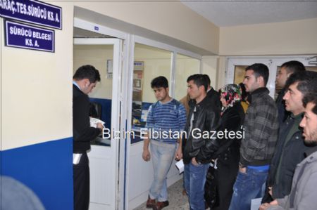 EÜAŞ'ın alacağı 20 kişilik iş makineleri operatörlüğü için müracaat edeceklerde şart koştuğu G Sürücü Belgesi nedeniyle Elbistan İlçe Emniyet Trafik Tescil ve Denetleme Büro Amirliği’nde yoğunluk oluştu.