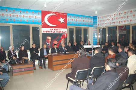 AK Parti Afşin İlçe Binası’nda gerçekleştirilen toplantıda konuşma yapan AK Parti Afşin İlçe Başkanı Fevzi Kaynak, “ Bizim görevimiz, teşkilatın bize verdiği görevleri en güzel şekilde ve eksiksiz bir şekilde yapmaktır. Burası bir makam değil bu milletin hizmetkârı olan bir partinin birer mensubuyuz. Bu sorumluluğu inşallah en güzel şekilde yapmak için çalışacağız.” dedi.
