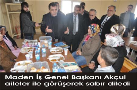 İmam Hatip’lerin Kur’an-ı Kerim ve kasideler okumasıyla başlayan Mevlid-i Şerif’te göçük altında kalanlar için dualar okundu. Mevlid’in ardından Maden-İş Sendikası Genel Başkanı Nurettin Akçul, göçükte hayatını kaybeden işçilerin ailelerinin yanına giderek hepsine sabır dilerken; “Her zaman sizlerin yanınızdayız” dedi.