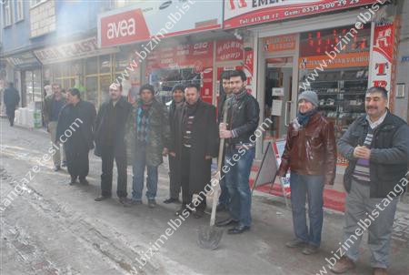Elbistan Eski Demirciler Çarşısı ve Vakıfbank arkasındaki bazı esnaflar bir araya gelerek Elbistan Belediyesi'nin kar temizlemede yetersiz kaldığını, kaldırımları ve caddeleri kendi imkanlarıyla temizlemek zorunda kaldıklarını belirtti.
