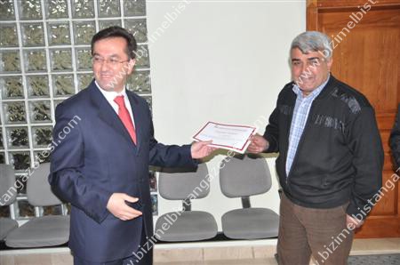 Tüm Türkiye’de olduğu gibi Elbistan’da da bu kış çok yoğun geçti ve mevsim normallerinin üzerinde kar yağdı. Yoğun kar yağışından en çok etkilenen ise hiç şüphesiz ilçemize bağlı köyler olurken, İl Özel İdaresi Elbistan Bakımevi Şefliği Şube Sorumlusu Halis Etin ile personeli de kapalı köy yollarını açmak için gece-gündüz çalıştılar. Bazı personellerin 24 saat hiç uyku uyumadan çalıştığı öğrenilen İl Özel İdaresi Elbistan Bakımevi Şefliği Şube Sorumlusu Halis Etin ile personelin bu özverili çalışması İl Özel İdaresi’nin de gözünden kaçmadı ve toplam 10 personeli teşekkür belgesi ile ödüllendirdi. İl Özel İdaresi Genel Sekreteri ve Vali yardımcısı Servet Güngör tarafından hazırlanan belgeler, Elbistan Kaymakamı Metin Maytalman tarafından takdim edildi. Teşekkür belgelerini takdim ederken kısa bir konuşma yapan Maytalman; “Bilindiği gibi bu kış yoğun geçti ve yağan yoğun kar nedeniyle de köy yollarımız kapandı. Fakat personelimizin özverili çalışmaları nedeniyle kapalı köy yollarımız kısa sürede açıldı ve hiçbir köyümüzün yolu uzun süre kapalı kalmadı. İl özel İdaresi Elbistan Bakım Evi Şefliği’ni bu özverili çalışmalarından dolayı Şube Sorumlusu Halis Etin’in şahsında tebrik ediyor, çalışmalarında başarılar diliyorum” dedi.