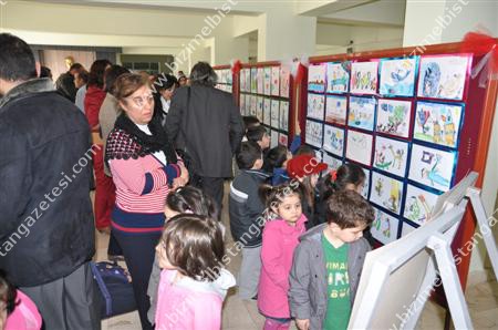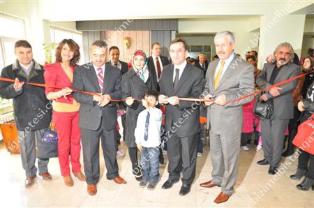 Kaymakam Metin Maytalman, Milli Eğitim Müdürü Ramazan Çelik ve Şube Müdürü Mehmet Görmüş’ün birlikte kurdelesini kestiği serginin açılışının ardından Talha Kürkçü, Kaymakam Maytalman’a ve sergiyi gezenlere çizdiği resimler hakkında bilgiler verdi.