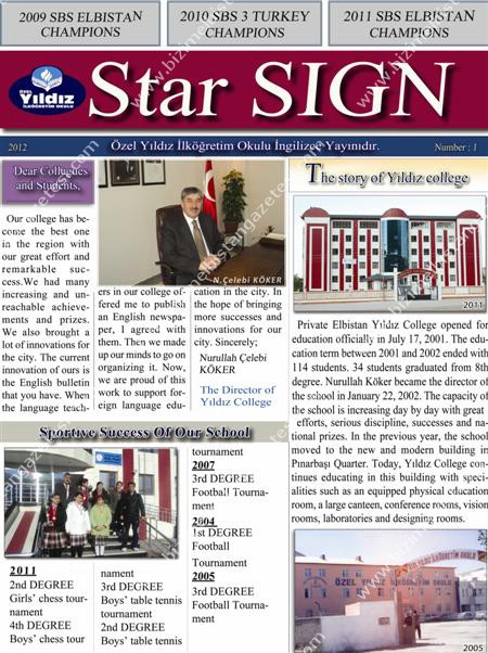Elbistan da daha önce hiç yayınlanmamış olan ve Özel Yıldız İlköğretim Okulu öğretmenleri ve öğrencileri tarafından hazırlanan İngilizce Gazete yayın hayatına başladı.