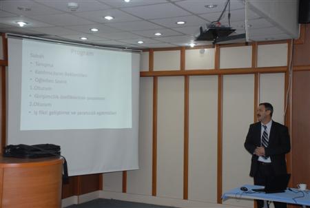 Konuşmaların ardından 5 dakika ara verilerek ilk derse geçildi. KSÜ Öğretim Görevlisi Ali Öter, girişimcilik ve destek programın amacı ve gerekçesi, uygulamalı girişimcilik eğitimi ve yeni girişimci desteği başlıkları altında, sinevizyon eşliğinde ilk dersi verdi.