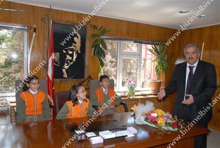 Çocuk Bayramı’nın 92. Yıldönümü etkinlikleri kapsamında dün ilk olarak Elbistan Kaymakamı Metin Maytalman’ı ziyaret eden, Cumhuriyet İlköğretim Okulu Müdürü Hacı Ahmet Arıkan, Öğretmen Münevver Cengizler ile öğrenciler Ege Çetin, Furkan Akar ve Olcay Günay, kaymakam koltuğunu kısa süreliğine de olsa devraldılar.