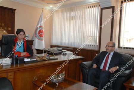 Esentepe İlköğretim Okulu Müdürü Hüseyin Söyle ve öğrenciler Nesibe Bol, Ayşegül Şahin ve Keyfo Ata, Elbistan Cumhuriyet Başsavcısı Esat Faruk Benli’yi makamında ziyaret etti.