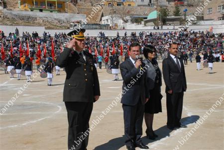 Ramazan Çelik’in konuşmasının ardından öğrenciler şiir okuyup, günün anlam ve önemini belirten konuşmalar yaptılar. Konuşmaların ardından tören geçişi yapıldı ve tören geçişinden sonra öğrencilerin hazırladığı müzikli oyunlar sergilendi. Ayrıca öğrencilerin açtığı Türk Bayrağı izleyenler tarafından büyük alkış aldı.