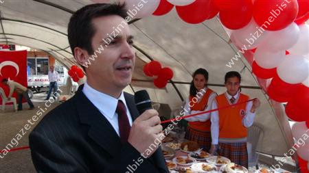‘Biliyorum, Güveniyorum, Paylaşıyorum’ projesi kapsamında Elbistan Çarşı Camii yanında kermes açan Hacı Bektaş Veli İlköğretim Okulu öğrencilerine velileri de eşlik etti. Kermesin açılış kurdelesini kesen protokol üyeleri bu tür etkinliklerin çok önemli olduğunu ifade etti.  Kermes, Elbistan Emniyet Müdür Vekili Dr. Önder Karakuş’un, açılış konuşmasıyla başladı. Karakuş, “Projemiz kapsamında birçok sosyal aktivitelerin kamuoyuna yansıması memnuniyet verici. Bu manada projede yer alan değerli meslektaşlarımı ve katkılarını esirgemeyen herkese teşekkür ederim. Çünkü projemizi diğer projelerden ayıran özelliği tamamen Elbistanlı öğrencileri kapsamasıdır. Sivil ve kamunun birlikteliğinin çok güzel örneğini sergilemenin haklı mutluluğunu yaşıyoruz. Bu nedenle bu tür projelerin devam etmesini temenni ediyorum" dedi.