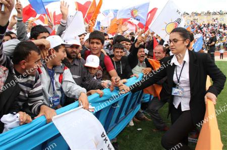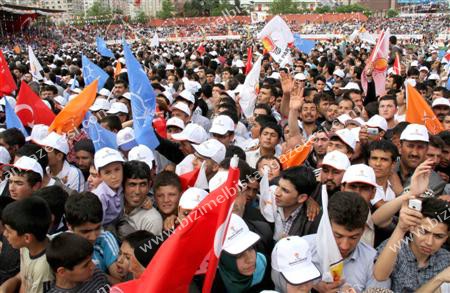 AK Parti'yi millet nezdinde karalamaya çalışanların, yazdıkları senaryolarla halkı kışkırtmaya çalışıp, provokasyonları gördüklerini, ancak tüm bunları boşa çıkarttıklarını dile getiren Erdoğan, konuşmasını da şöyle sürdürdü; "Bakın biz 9.5 yıl boyunca millet iradesini en güçlü şekilde koruduk. Her türlü demokrasi dışı müdahale, çetelerin, mafyanın, cuntanın, kirli girişimlerine göğüs gerdik. Avrupa Birliği'ne tam üyelik için, en güçlü ve en kararlı adımları biz attık ve biz her zaman karar ve hedeflerimizin arkasında durduk. 9.5 yıl boyuncu demokratikleşme yolunda kararlılıkla yürüdük. Türkiye'nin 7 bölgesi, 81 kentine 780 bin kilometre karesine, her bir karışına 75 milyon Türkiye Cumhuriyeti vatandaşının her birine hizmet götürmenin çabası içinde olduk. 9.5 yıl boyunca hiçbir ayrımın içinde olmadık, hiçbir ayrımcı girişime taviz vermedik. İllere hizmet götürürken, o illerin bize verdikleri oy oranlara hiç bakmadık. Hiç kimsenin dinine, diline, mezhebine, etnik kökenine bakmadık. Doğuştan gelen farklılıkları bir üstünlük ya da dezavantaj olarak görmedik. Biz sadece tek millet, tek bayrak, tek devlet dedik. Ama asla tek din demedik.”