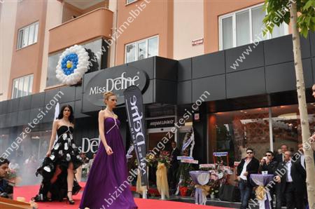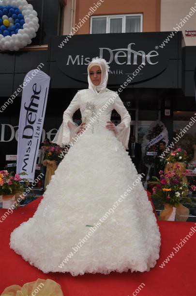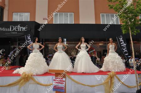 Mankenlerin üzerlerinde taşıdığı gelinlik, abiye, nişan ve kına gecesi elbiselerinden en çok beğenileni bembeyaz gelinlik çeşitleri oldu. Davetliler tarafından büyük alkış alan defilenin ardından İşadamı Mehmet Yüce ile Miss Defne İzmir Sahibi Şinasi Köseoğlu mankenlerle birlikte davetlileri selamladıktan sonra açılışa geçildi.