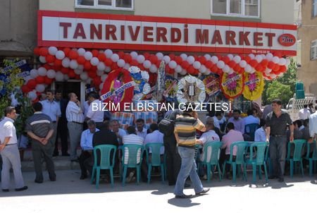 AK Parti İl Genel Meclis Üyesi Hüseyin Tanrıverdi’nin amcası İsmail Tanrıverdi’nin sahibi olduğu Güneşli Mahallesi Battalgazi Caddesi’ndeki Tanrıverdi Market’in açılışı dün bir törenle gerçekleşti.  Saat 13:30’da düzenlenen törenle Elbistan Kaymakamı Ahmet Altıntaş, Elbistan Belediye Başkanı Avukat Durmuş Küçük ve Elbistan Müftüsü Ramazan Tolan birlikte hayırlı olsun dileklerinde bulunarak Tanrıverdi Market’in açılış kurdelesini kestiler. Açılışın ardından Tanrıverdi Market Sahibi İsmail Tanrıverdi ve İl Genel Meclis Üyesi Hüseyin Tanrıverdi, Kaymakam Ahmet Altıntaş ve diğer davetlilere market hakkında bilgiler verdiler.