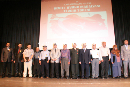 Vatani görevini yaptıkları esnada şehit olan Kahramanmaraşlı 6 şehidin ailesine ve 4 gaziye 2933 Sayılı Madalya ve Nişanlar Kanunu gereği Necip Fazıl Kısakürek Kültür Merkezi'nde düzenlenen törenle Devlet Övünç Madalyası ve Gazilik Beratı verildi.