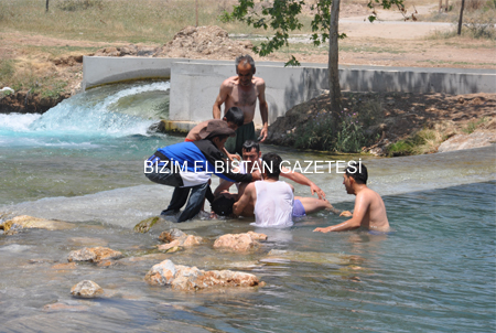 Elbistan Belediyesi tarafından 2009 yılının Eylül ayında Kaynarca Mevkii’nde başlayan plaj çalışmaları devam ediyor. İnşaatı devam eden plajda suya girilmemesi için yapılan uyarılara rağmen, gençler ve çocuklar serinlemek için suya girmeye devam ediyordu.