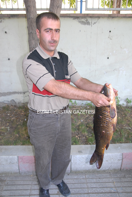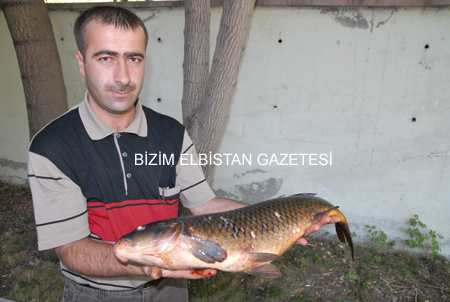 Elbistan’da Çalış Köyü Püskül Mevkii Ceyhan Nehri’nde yakalanan 8 kiloluk aynalı sazan balığı görenleri şaşkına çeviriyor. Geçtiğimiz Pazar günü serpme sistemiyle yakaladığı balığı güçlükle nehirden çıkardığını belirten Elbistan Halk Eğitim Merkezi Personeli İdris Göçer, “Pazar günü her zaman balık tuttuğumuz yer olan Çalış Köyü Püskül Mevkii’ne gittim. Burada arkadaşlarımla birlikte Ceyhan Nehri’nde balık tutuyorduk. Serpme sistemiyle ağı suya attım. Birden bire büyük bir balığın çırpındığını gördüm. Hemen suya girdim ve ağı çektiğimde büyük bir aynalı sazan balığı yakaladığımı gördüm. Gerçekten çok büyük bir balık. Arkadaşlarım balığı görünce çok şaşırdılar. Balığı tarttım ve tam 8 kilo geldi. Boyu 60 cm, çevresi ise 50 cm geliyor. Böyle bir balık yakaladığım için çok mutluyum. 10 yıldır balık tutarım ve Tarım ve Köyişleri Bakanlığı’ndan Amatör Balık Belgem bile var ama ilk defa böyle bir balık tuttum” dedi.
