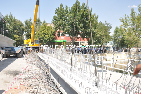 | Elbistan Belediyesi Tekke Köprüsü'nün genişletme çalışmaları kapsamında köprünün bir tarafına 40 ton ağırlığında ön germeli beton köprü kirişi yerleştirdi. Fen İşleri Müdürü Cebrail Çatalbaş, çalışmalar tamamlandığında köprünün hem genişlemiş hem de sağlamlaşmış olacağını söyledi. |