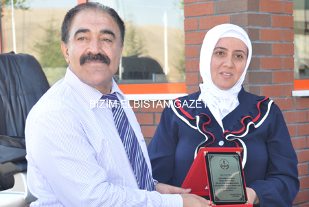 Konuşmaların ardından Yaşar Özkara, Bölükbaşı’na küçük bir hediye verirken, Ebubekir Ölç ise Elbistan İlköğretim Okulu’na 21 yıldır hizmet eden Mustafa Bölükbaşı’na hizmetlerinin anısına bir teşekkür plaketi verdi.