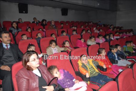 | Sevgi Anaokulu'nun minikleri beraberinde İlçe Milli Eğitim Müdürü Ramazan Çelik ile 'Çılgın Hırsız' animasyon filmini izlediler. |