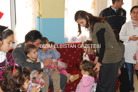 Elbistan’dan gelen polis amcaları ve ablarının getirdiği hediyelerle sevinen kimsesiz çocukların mutlulukları gözlerinden okunurken, kendilerine yalnız olmadıklarını hissettiren polis amcaları ve ablalarına teşekkür ettiler.