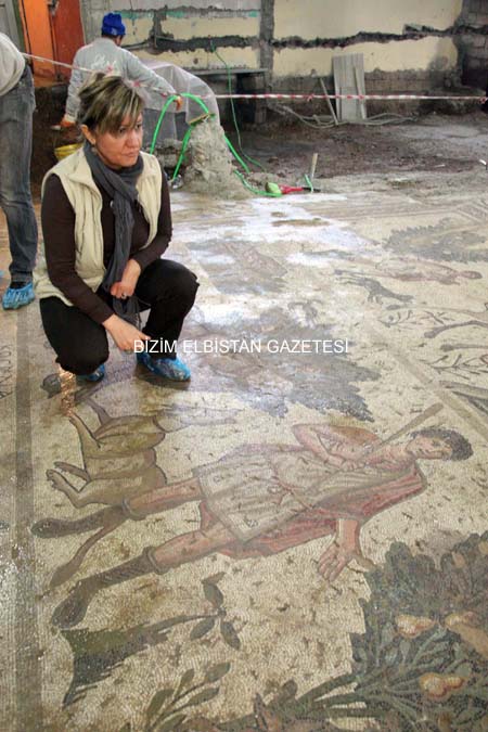 "Yani tam bin 500 yıllık tarihi bir zenginlik, arkeolojik zenginlik bu iki katlı gecekonduların altında yatıyor. Bu sene itibarıyla geçen yıl yapılan kazıların devamı niteliğinde kazılar yapılıyor. Mozaiklerin asfalt yola doğru gittiği görüldü. Araya bir duvar çekildi ve asfalt yolda kazı çalışması yapıldı. Yoldan 60 santim aşağı indiğimizde mozaikli tabanın devamı bulundu. Bu mozaikler bize sosyal yaşamı anlatıyor. Diğer Zeugma mozaiklerinde, Efes Yamaç Villaları'nda hep mitoloji anlatılır ama bizim bulduğumuz, ortaya çıkardığımız bu mozaikte günlük yaşam, sosyal yaşam anlatılıyor. Mozaiklere bakarak Germenicia evlerinin, villalarının nasıl olduğunu, hangi hayvanların o dönemde yaşadığını, hangi bitkilerin hangi meyvelerin yetiştiği, bir Romalının ne giydiği, ayakkabısının nasıl olduğunu, avcılıkla uğraştıklarını hepsini bu mozaikte yakalayabiliyoruz."