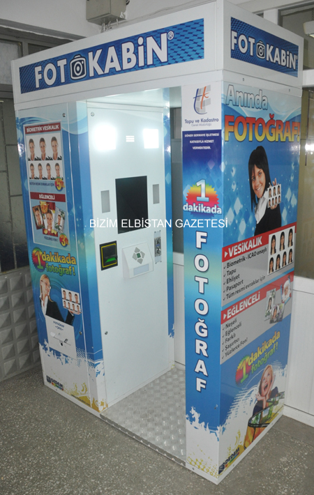Elbistan Tapu Müdürlüğü’nün talebini dikkate alan Tapu ve Kadastro Genel Müdürlüğü Döner Sermaye İşletmesi Elbistan’a da Foto Kabin bıraktı. Genel müdürlük bunun yanında vatandaşların tapudaki işlemlerin bitmesini beklerken herkesin ücretsiz yararlanabileceği bir de çay ve kahve makinesi bıraktı.