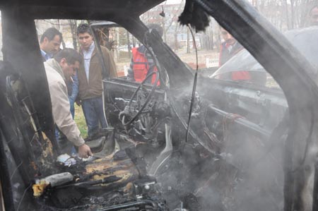 Bıçak, koku gelmesi üzerine hemen motoru durdurarak araçtan indiğini belirterek; “Hemen akünün kutup başlarını söktüm ama yinede bir faydası olmadı araç birden yandı” dedi.