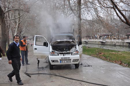 Ekmek dağıttığı aracı gözleri önünde cayır cayır yanan Bıçak hemen itfaiyeyi aradı. Kısa sürede olay yerine gelen itfaiye ekipleri hemen yangına müdahale ederek kısa sürede yangını söndürdü.