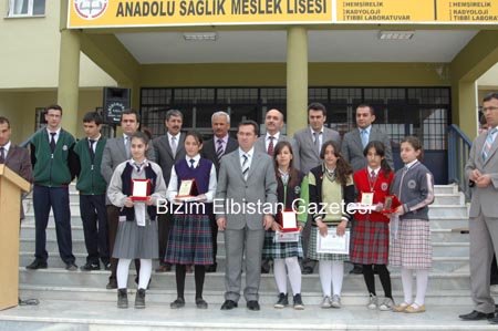 Törenine Elbistan Kaymakamı Metin Maytalman, Milli Eğitim Müdürü Ramazan Çelik ile çok sayıda öğretmen ve öğrenci katıldı. Açılış konuşmasını gerçekleştiren Sağlık Meslek Lisesi Müdürü Reşit Yinanç, proje tabanlı beceri yarışmasında ve okuma yarışmasında dereceye giren öğrencileri kutlayarak, “Proje tabanlı beceri yarışması ilk defa 2005-2006 eğitim-öğretim yılında başlatılmıştır. Buradaki amaç Milli Eğitim Bakanlığı'nın mesleki ve teknik eğitim kurumlarındaki öğrencileri araştıran planlı ve disiplinli bir şekilde projeler üreten bireyler olarak yetiştirilmesidir. Bu durum ülkemizin geleceği açısından çok önemlidir. Proje tabanlı beceri yarışması 5 grupta yapılmaktadır. Bilgi ve iletişim hizmetleri, sağlık hizmetleri, tasarım ve uygulama hizmetleri, turizm hizmetleri ve üretim ve teknoloji hizmetleri. Toplam 7 bin 397 proje, sağlık hizmetleri grubunda 624 proje katılmıştır. Okulumuz Anadolu Sağlık Meslek Lisesi, sağlık hizmetleri grubundaki projeler arasında 4 Mart’ta il birincisi, 14-17 Mart’ta bölge birincisi ve 4-8 Nisan tarihinde Ankara'da yapılan finalde Türkiye 2.’si olmuştur. Bu başarı, Kahramanmaraş'ımızın, Elbistan'ımızın ve okulumuzun gurur verici başarısıdır. Ben öncelikle bu başarıdan dolayı öğrencilerimiz Emre Üspolat ve Ömer Kral'ı, proje danışman öğretmenleri Recep Kocalar ve Erkut Ertugrul ile okul müdür yardımcıları Muazzez Aksu ve Mehmet Yılmaz'ı, tüm öğretmen arkadaşlarımı, sevgili öğrencilerimi candan kutluyorum” dedi.