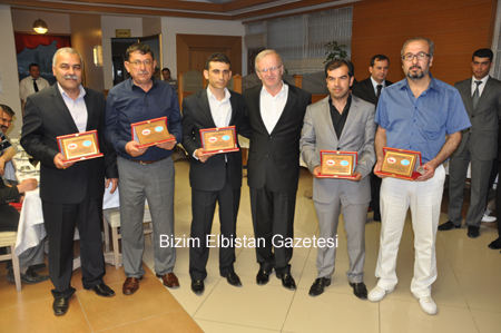 Plaketler; Enerjisa Üretim A.Ş adına Serdar Ertürk’e, Tayen Elektrik Şantiye Müdürü Ercan Çil’e, Sword Otel İşletme Müdürü Emine Kaya’ya, Bim A.Ş Elbistan Bölge Sorumlusu Özgür Akyıldız’a, A-101 Mağaza Geliştirme Müdürü Erhan Umut’a, Aysel Tunay İş Ortaklığı adına Sait Atalan’a, Kayapınar Restoran adına Mıkdat Er’e, Gölpınar Alabalık Tesisleri adına Bekir Böke’ye, Teknik Yapı adına Sabri Aloğlu’na, Kervansaray Restoran adına Ayşegül Dinç’e, Zabunoğlu Otomotiv adına Mehmet Zabun’a, Özyılmazlar Hafriyat adına Yılmaz Sönmez’e, Yuvam İnşaat adına Fatih Kul’a, Oyak Beton adına Mükrimin Yinanç’a, Özel Yaşam Hastanesi adına Dr. Erkan Çetin’e, Eltay Kapak adına İrfan Doğan’a, Çarşı Market adına Mehmet Çetin’e, Ermezler Grup adına Ali Ermez’e, Ermaş İşletme Müdürü Kemal Özdemir’e takdim edildi.