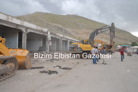 | Elbistan Hal Açık Pazarı'nda bulunan tüm esnaflar için projesi tamamlanan yeni Hal Binası için ilk adım atıldı. Elbistan Belediye Başkanı Durmuş Küçük tarafından yıkımı başlanan Eski Hal Binası, yaz sonuna kadar tamamlanacak. |