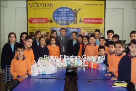 | Özel Ceyhan İlköğretim okulu öğrencileri İsrail saldırılarında yaralanan Filistinlilerin yaralarına merhem olma amacıyla Elbistan Tüm İşçiler Derneği'nin başlatmış olduğu ilaç toplama kampanyasına destek verdi. |