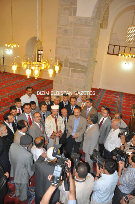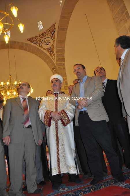 Kahramanmaraş Valisi Mehmet Niyazi Tanılır, Elbistan Kaymakamı Ahmet Altıntaş, Afşin Kaymakamı Faik Arıcan, Garnizon Komutanı Yüzbaşı Barış Kaya Taş, Elbistan Belediye Başkanı Avukat Durmuş Küçük, İl Emniyet Müdürü Mustafa Aydın, Kahramanmaraş Müftüsü Bekir Gülce ile daire amirlerinin de eşlik ettiği Diyanet İşleri Başkanı Prof. Dr. Ali Bardakoğlu, burada Kahramanmaraş Sütçü İmam Üniversitesi Öğretim Üyesi prof. Dr. Mehmet Özkarcı’dan caminin tarihi hakkında bilgi aldıktan sonra Pınarbaşı Kale Restoran’da onuruna verilen yemeğe katıldı.